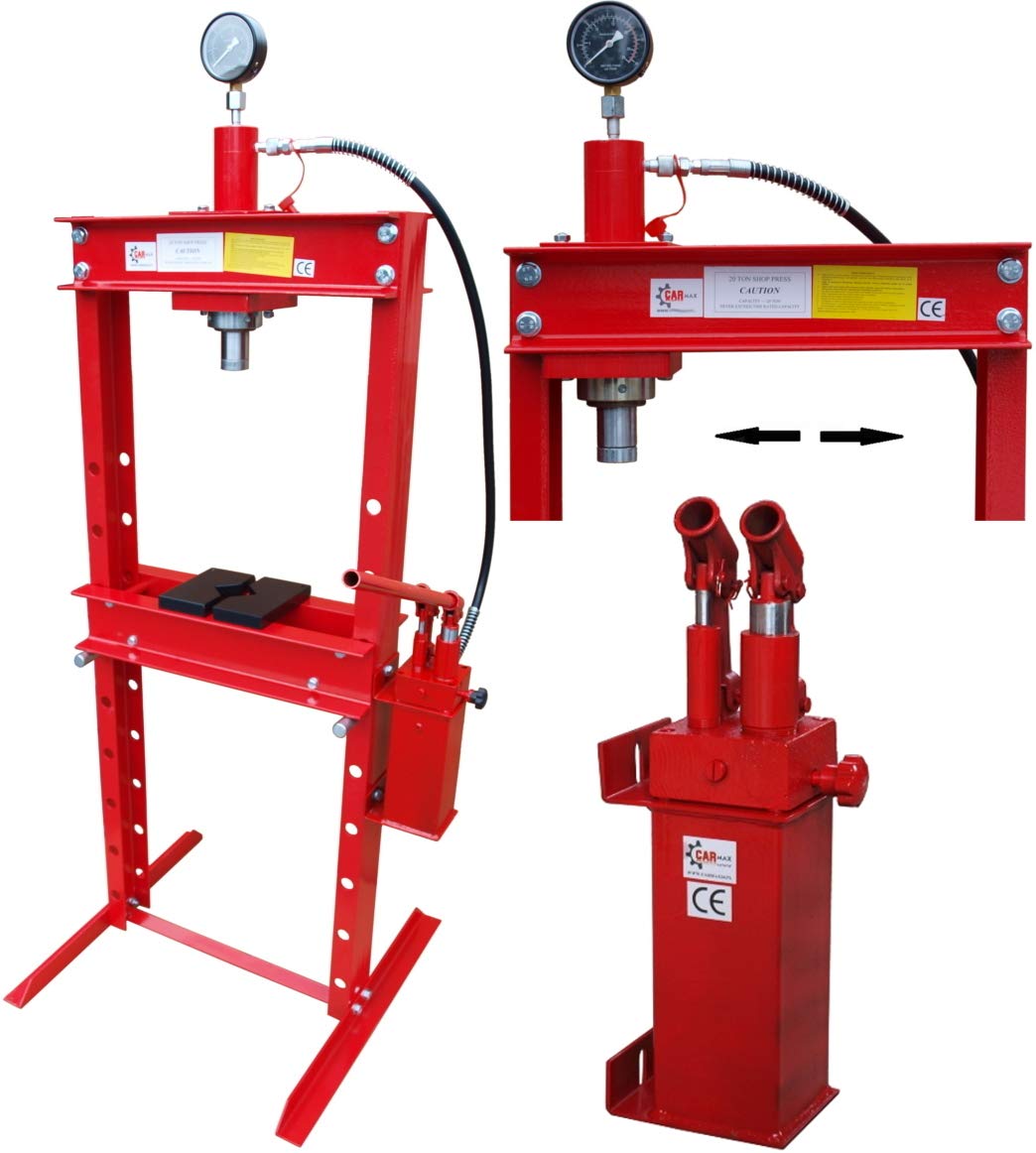 Carmax Werkstattpresse 20T Hydraulikpresse mit 2-Pumpen hydraulisch Rahmenpresse Presse, kompatible mit Auto, 20000 kg