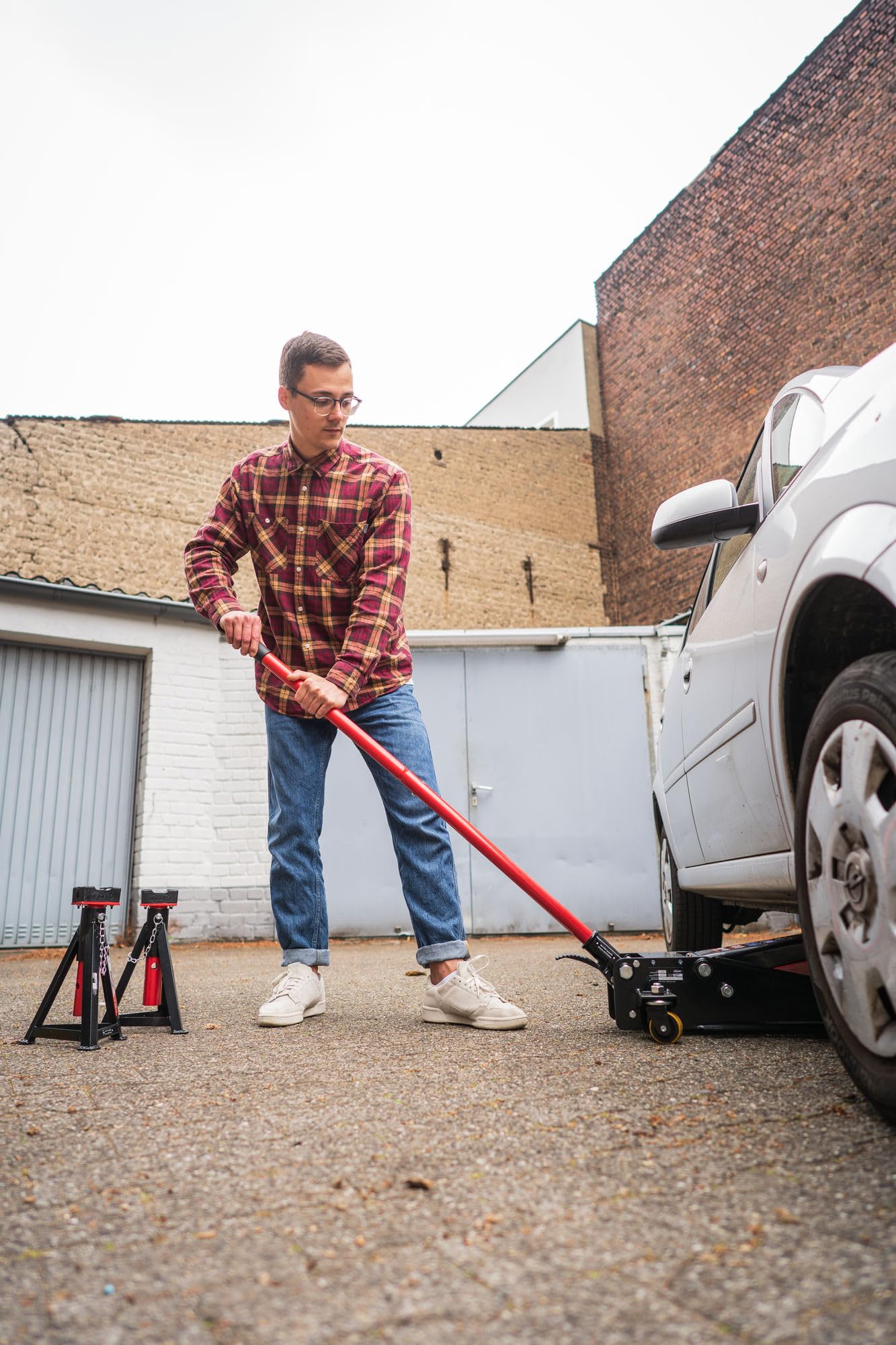 - Für den Reifenwechsel oder Reparaturen, für die keine Hebebühne nötig ist